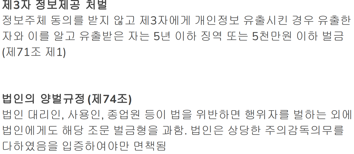 개인 정보 관련하여, 제 3자에게 내 정보를 제공하면 처벌 할 수 있다. 또한 이 때 법인의 양벌 규정이 적용된다.