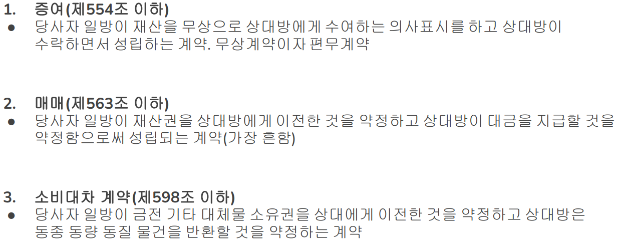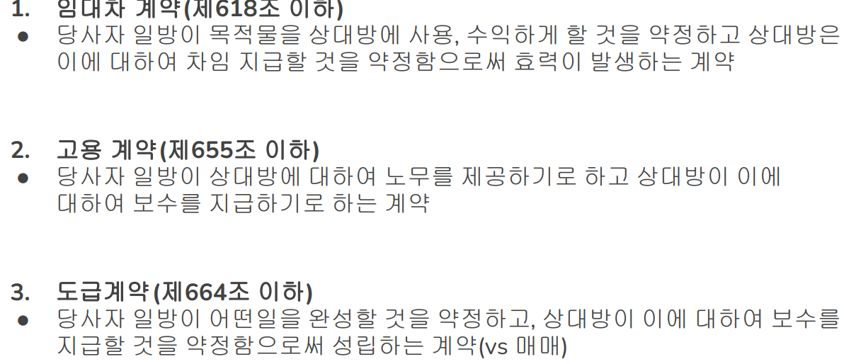 3) 계약: 둘 이상의 서로 대립하는 의사표시에 의해 성립된 법률행위 # 청약 -> 승낙