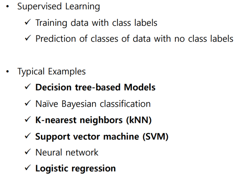 Training data with class labels. -> 클래스 라벨 있는 훈련 데이터로 진행된다.