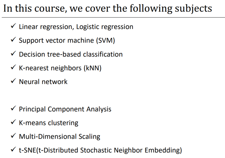 이 수업은 데이터 마이닝에 대한 기본적인 개념을 이해하고, 대표적인 알고리즘을 학습하는데 목표를 둔다.