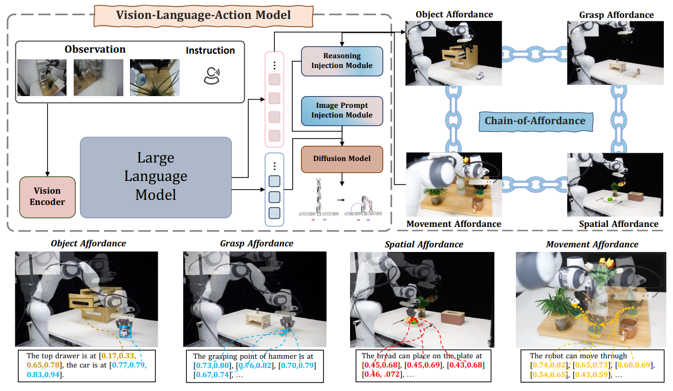 CLIPort, RT-1, OpenVLA 같은 모델들은 End-to-End 방식으로 입력부터 행동까지를 하나의 모델에서 직접 매핑하며, 파이프라인이 간결하고 통합적으로 설계된다. 반면, VLATest, Chain-of-Affordance는 Modular 방식을 채택해 인식, 언어 grounding, 행동 모듈을 따로 학습함으로써 각 구성 요소를 세밀하게 조정할 수 있는 유연성을 확보한다.