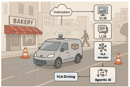 VLA 기반 자율주행 차량은 단순히 물체를 감지하는 것을 넘어, 언어적 지시나 인간 행동의 의미까지 이해하고 이에 맞는 주행 결정을 내릴 수 있다. 예를 들어 "주유소 지나 두 번째 골목에서 우회전해" 같은 지시는 시각·언어의 의미적 통합을 필요로 한다.