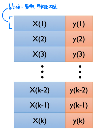 데이터를 K개의 데이터 그룹으로 나누고(한 개의 데이터 포인트가 아니다) 이걸 학습에 이용한다. 이 방식은 원래 데이터 수 만큼의 크기를 갖지 못한다.
