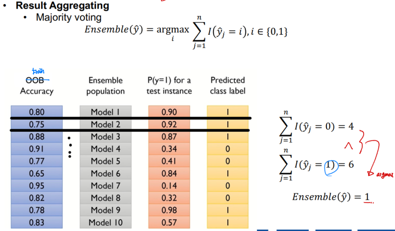 우선 간단하게 어떤 클래스가 많은지 비교하여 예측 결과를 합칠 수 있다.