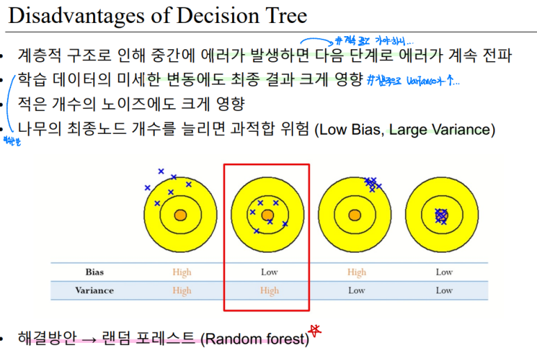 cf) 장점으로는 1) 중요한 feature를 확인할 수 있음, 2) 스케일링이 필요 없음. 이 있다.**암기*