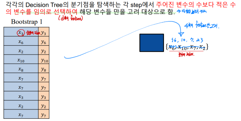각각의 Bootstrap들이 모두 이러한 방법으로 tree를 만든다.
