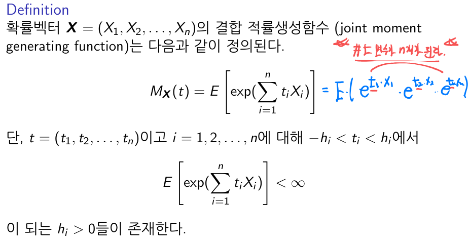 - 결합 적률생성함수 (확률벡터의 MGF)