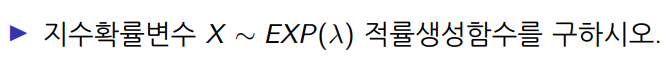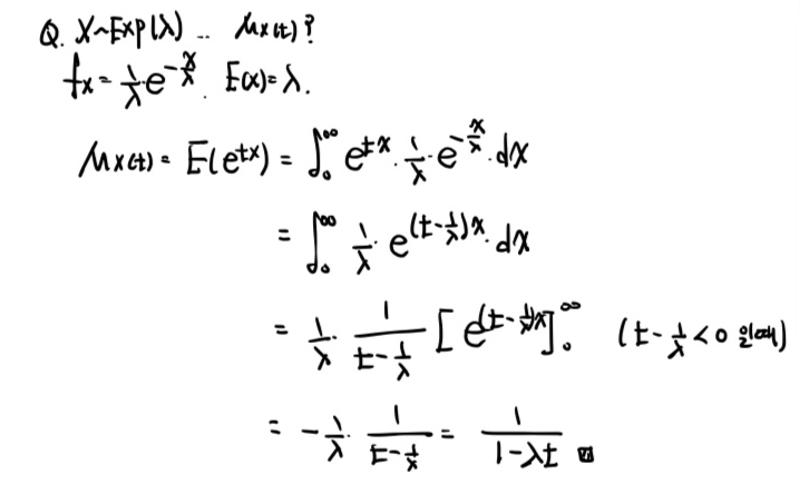지수 분포의 MGF를 풀다가 갑자기 이상한 말은 한 것 같지만.. 꼭 외워놓아야 문제를 편하게 풀 수 있다.