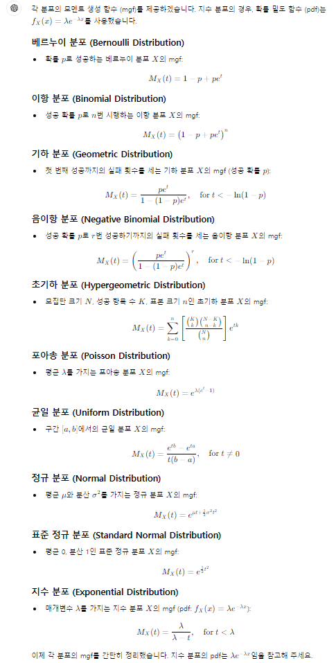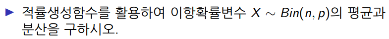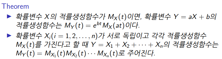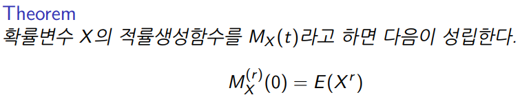 그리고 어떻게 적률 생성 함수를 통해 적률을 생성하는지를 잘 알아야 한다.
