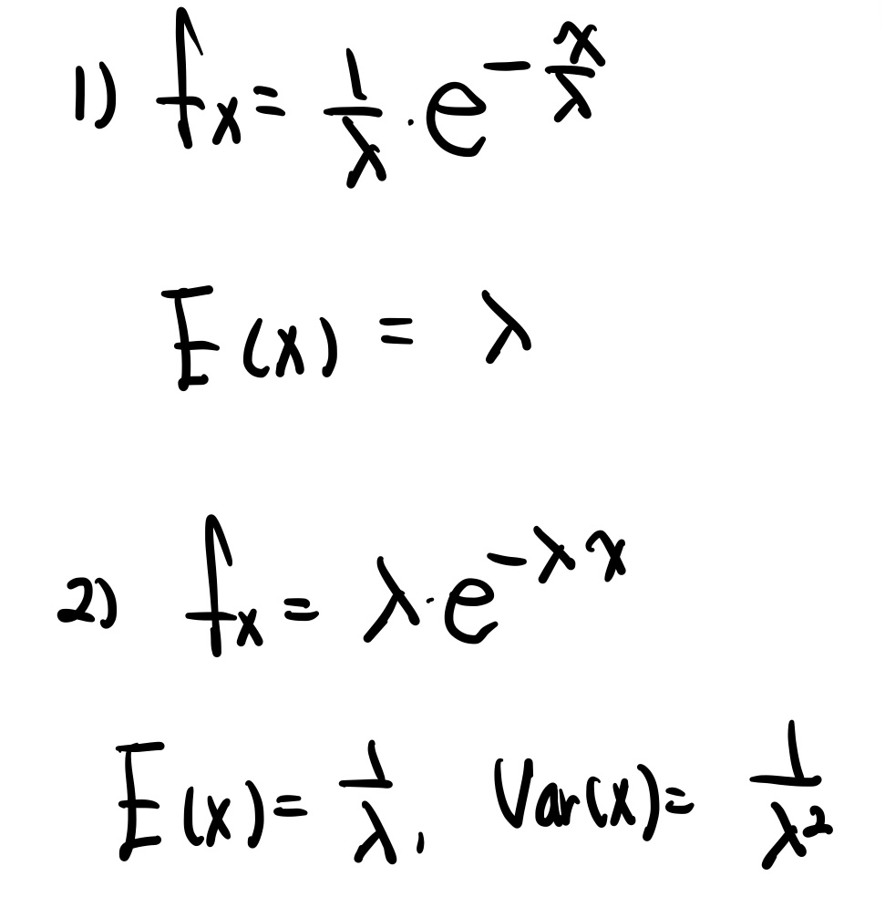 2) 지수 분포의 pdf 형태는 두 가지이다. (보통 2번이 더 일반적인 지수 분포 pdf)