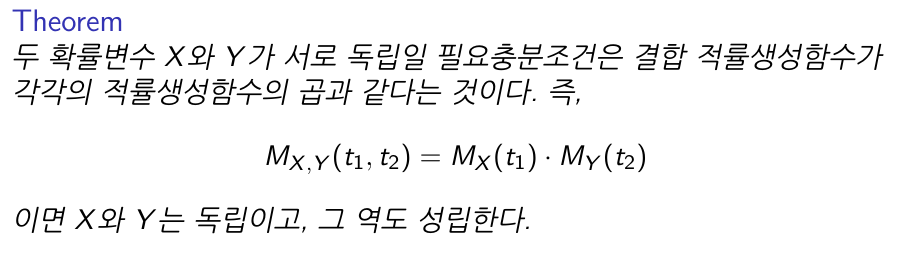 그냥.. 음 그렇구나 하고 넘어가면 된다. 하지만, 확률 변수 1개당, MGF의 변수는 한 개가 매칭되어야 한다. 이를 꼭 잊지 말자. 아래 예제에서 이를 실수한 예시를 보인다.