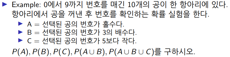 임의의 사건 A에 대한 확률이 다음과 같이 주어지는 경우이다.