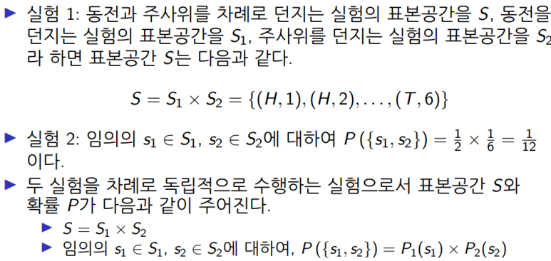 - 표본 공간(sample space): 관찰 가능한 모든 결과의 집합