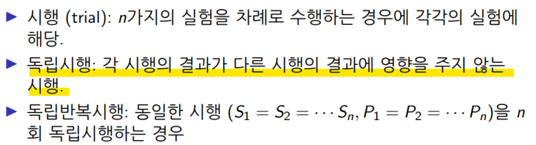 - 실험(Experiment): 어떤 현상의 관찰 결과를 얻기 위한 과정