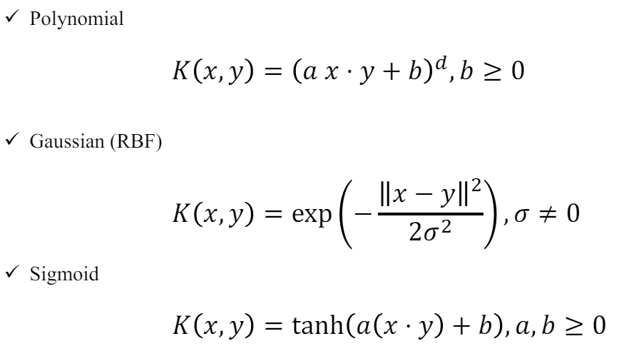 이러한 커널 함수는 여러 종류가 존재한다. 아래 3가지는 꼭 암기하자.