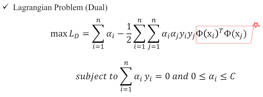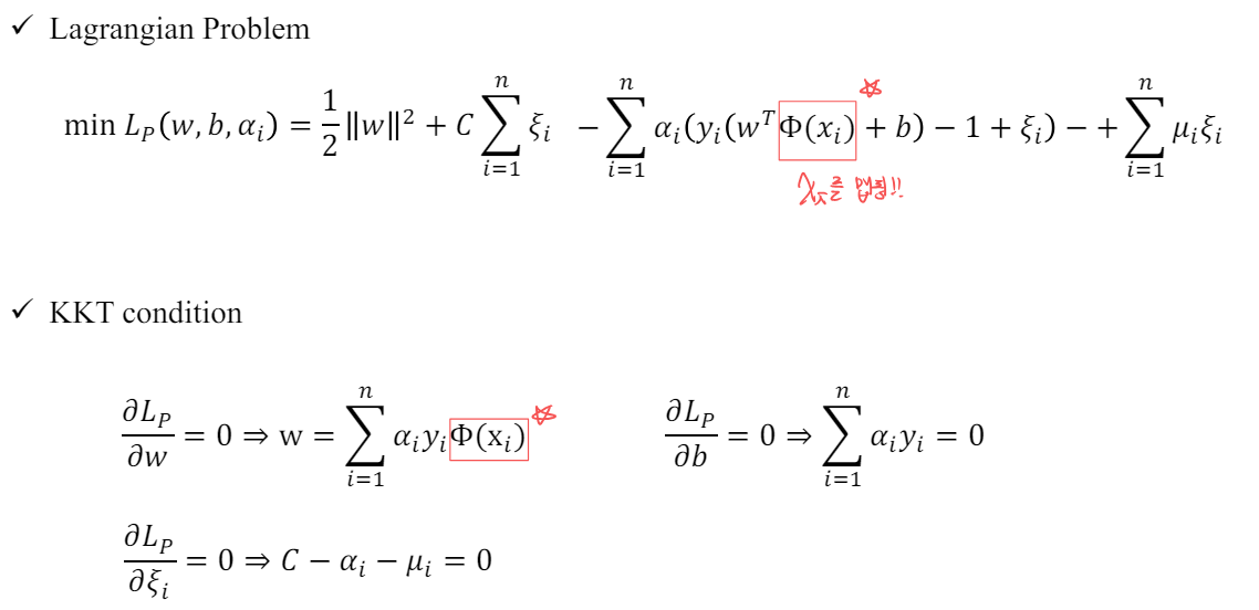 방법의 soft margin SVM과 같다. 하지만 기존 데이터 & x_i &를 맵핑 함수에 대입하여 사용하는 것이 다르다.