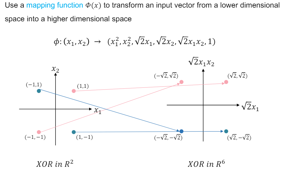 하지만.. 우리는 Linear Decision boundary를 사용하면서 해당 문제를 해결할 수는 없을까?? 이렇게 해결하기 위해 사용하는 mapping function과 Kernel에 대해 알아볼 것이다.