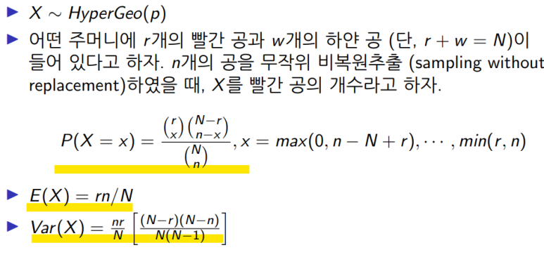 - 5) 초기하 분포 # 주머니 비복원 추출