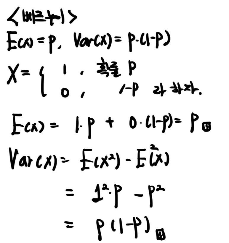 # 베르누이 분포의 기댓값, 분산 증명 ***증명***
