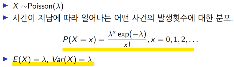 - 6) 포아송 분포 ex) 한 달 이내의 교통사고 횟수