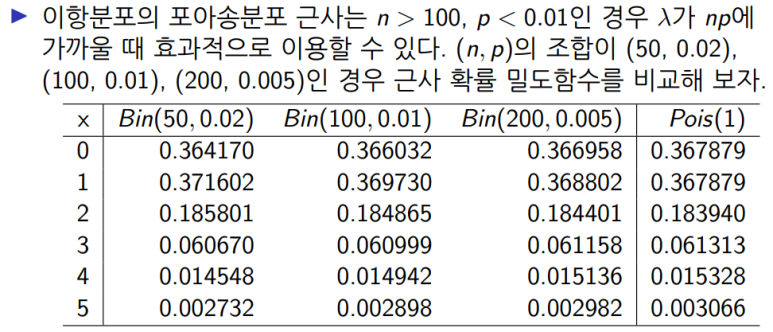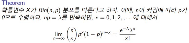 베이기음초포 6개의 이산 확률 분포를 잘 외워두자. (확률질량함수, 기댓값, 분산, memoryless, 각 증명) 안보고 쓸 줄 알아야한다.