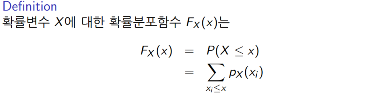 이산형 확률 변수의 누적분포함수(확률분포함수)의 정의. 잘 알아두자.