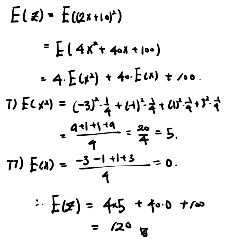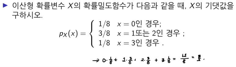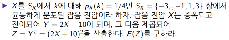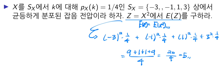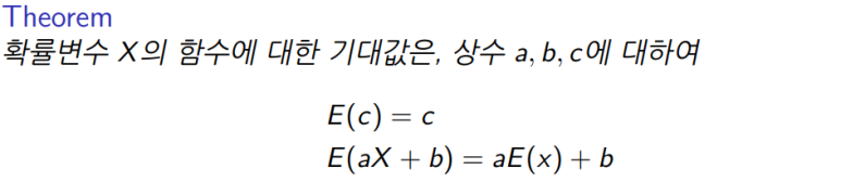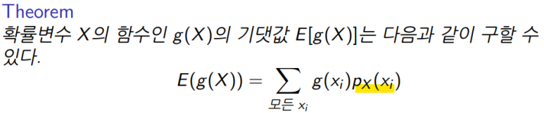 # 확률 변수 X의 함수 g(X)의 기댓값 (확률 변수만 바뀌고 확률은 변하지 않는다.)
