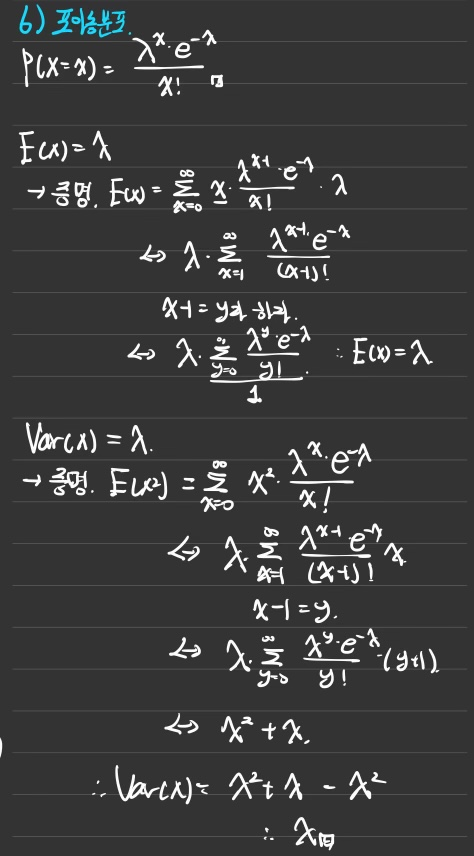 # 포아송 분포의 기댓값, 분산 증명 ***증명*** (첫번 째 퀴즈 때 기출됨.. 또 나올까..?)