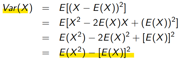 제곱의 평균 - 평균의 제곱을 통해 분산을 구한다.