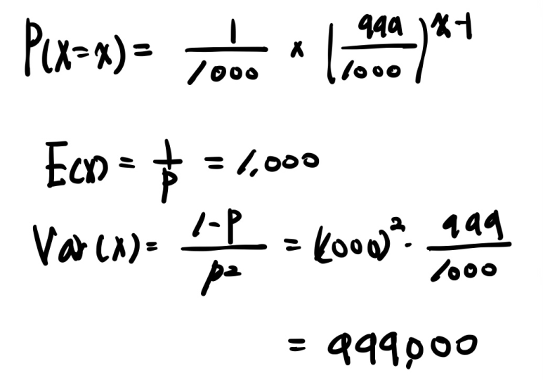 E(X) = 1/ p , Var(X) = 1 - p/ p^2. 이를 사용하면