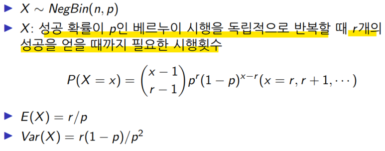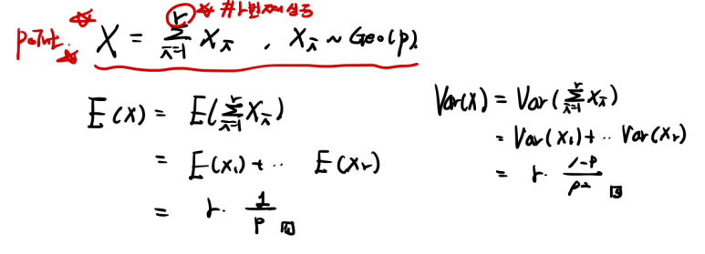 # 음이항 분포는 기하 분포의 합으로 볼 수 있다... 걍 암기하라.