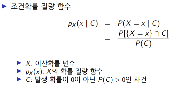 - 조건확률 질량 함수 # 말 그대로.. 조건부 확률로 이루어진 확률질량함수.