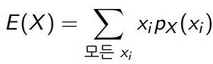 이산형 확률 변수의 기댓값은 다음과 같의 정의된다. Px는 이산형 변수 X의 확률질량함수이다.