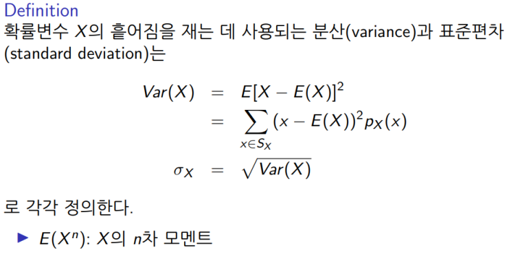 분산은 (X - 기댓값)의 제곱의 평균(기댓값)을 통해 구한다. 이를 쉽게 푸는 공식은 다음과 같다.