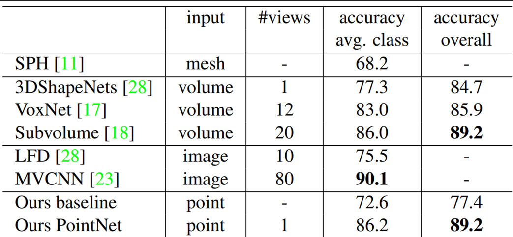 cf) MVCNN은 거의 80개의 view를 projection한 결과물.. 하나의 view만 보면 되는 PointNet이 계산량 등을 고려할 때 더 좋다고 생각할 수 있다.