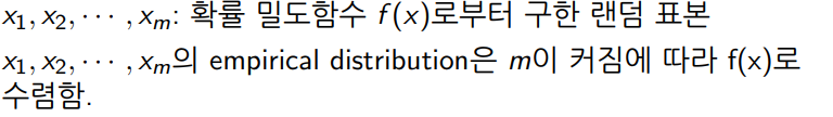PDF로 부터 랜덤 표본을 뽑는다. 이에 대한 실험적 분포(empirical distribution)은 m이 커짐에 따라 fx로 수렴함.