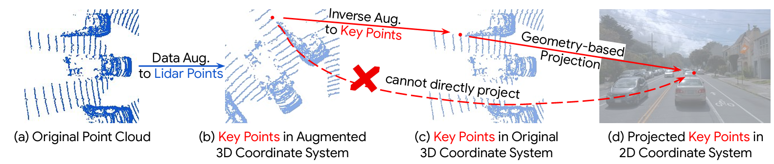 위 그림을 보면 데이터 증강이 적용된 후, LiDAR와 카메라 데이터를 기존 방식으로는 제대로 정렬할 수 없음을 보인다.