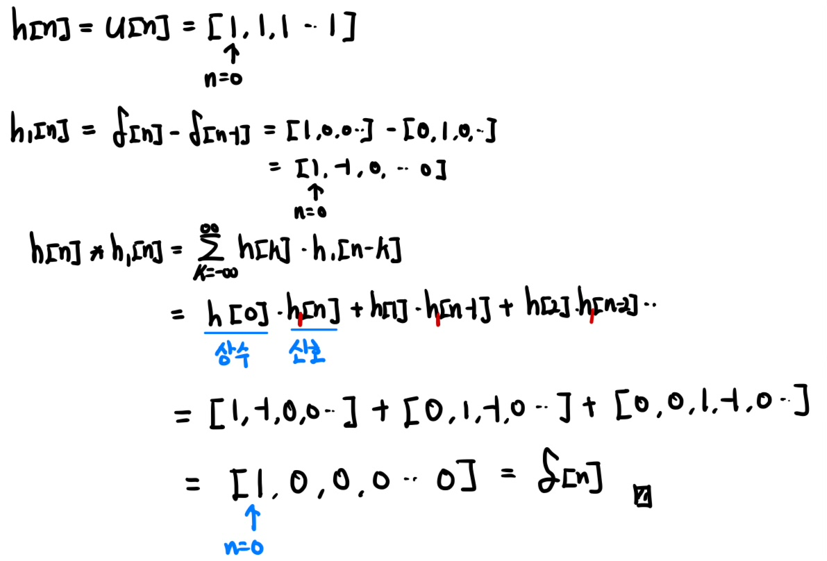 이러한 시스템이 존재한다면, 두 Impulse response의 합성곱은 Impulse 신호가 나와야 한다. Q. O.X 포인트 성질 암기