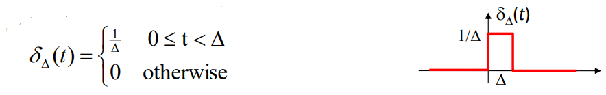 △->0 일 때 정의한 함수가 Impulse 함수가 되며, 정의한 함수의 response가 Impulse response가 된다.