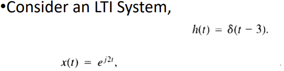 LTI System에 들어갈 Input이 다음과 같이 복소 지수 Complex Exponentials 형태이면, 같은 complex exponential에 크기만 변한 형태로 Output 신호가 나온다. # 진폭만 변화하고, 같은 복소지수를 갖는다.