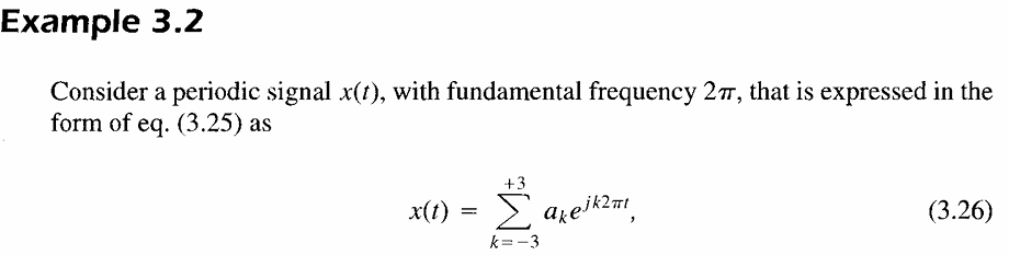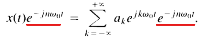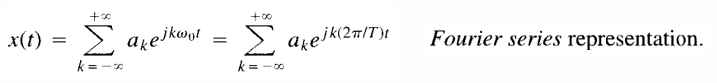 주기 함수 x(t)가 w0 = 2pi인 Complex Exponentials합, 즉 푸리에 시리즈로 표현되어 있다.