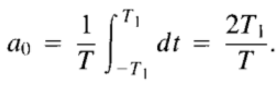 계수 a0을 구할 때는 안쪽 지수 신호가 1이 되어 다음과 같이 된다. 이를 dc 혹은 constant component라고 한다.