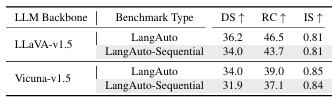 에이전트는 긴 지시를 처리하는 데 어려움을 겪었으며, 주행 점수와 경로 완료율이 감소. 특히, LLaVA와 Vicuna 기반 모델은 지시 완료 여부를 파악하는 시간적 일관성 문제를 나타냈다.