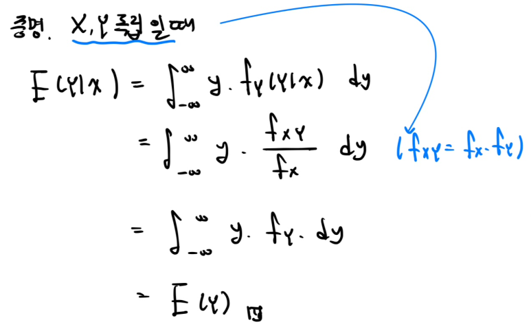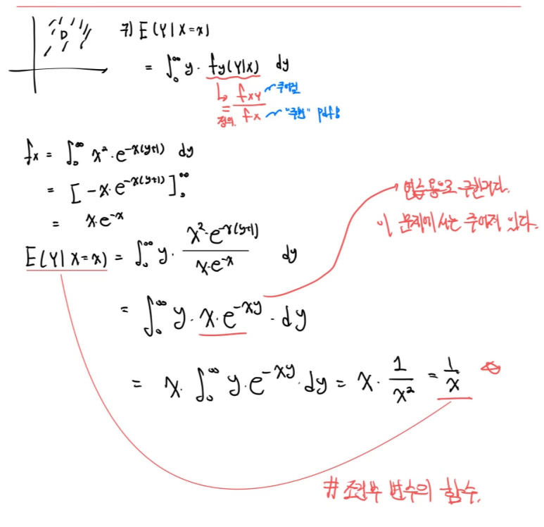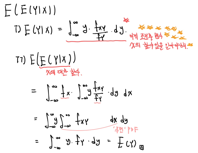 # 조건부 기댓값은 조건부 변수의 함수이다. 그래서 ii)에서 x의 pdf를 곱했다.(기댓값 정의)