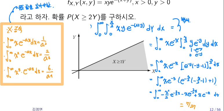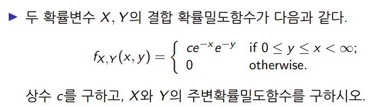 sol2) 결합 pdf가 각각의 x ,y 두 일변수 함수로 쪼개질 수 있기에, X, Y는 독립이다.
