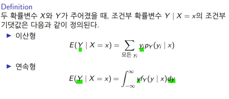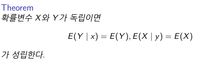 - 조건부 기댓값 # 조건부 기댓값은 조건부 변수의 함수이다.