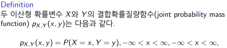그냥 이산형 확률 변수가 2개 일 때의, 확률질량함수를 결합 확률질량함수라고 부른다.