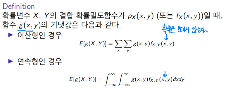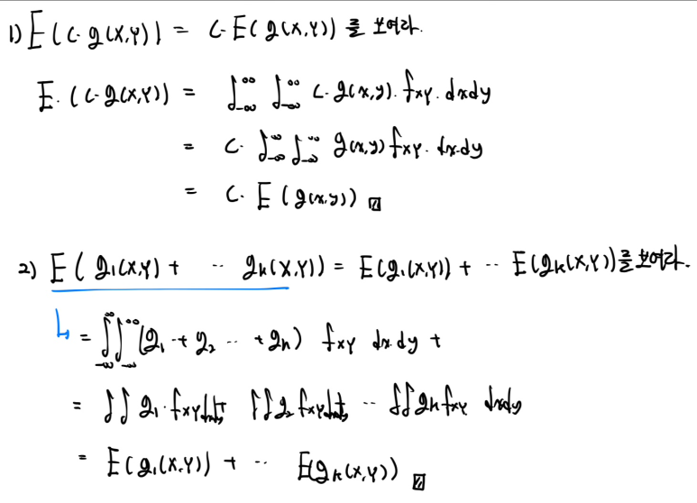 - 기댓값의 성질 (2변수에서도 유지되는가?) **증명 2개**