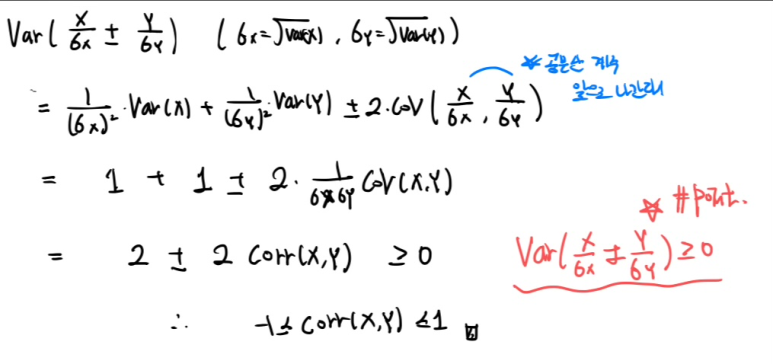 상관 계수가 -1과 1사이임을 증명 **증명**