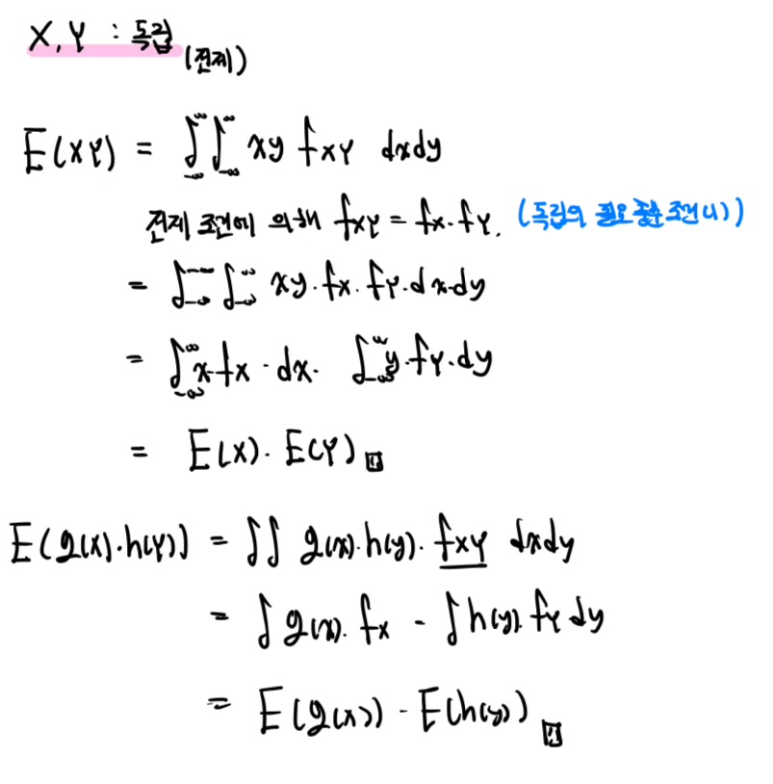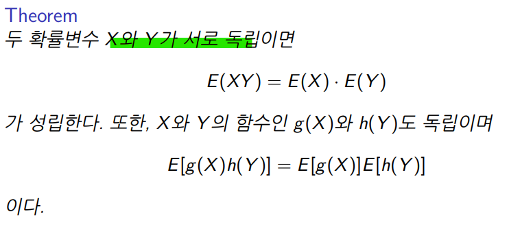 2) X,Y 가 독립일 때, E(XY) = E(X)E(Y)